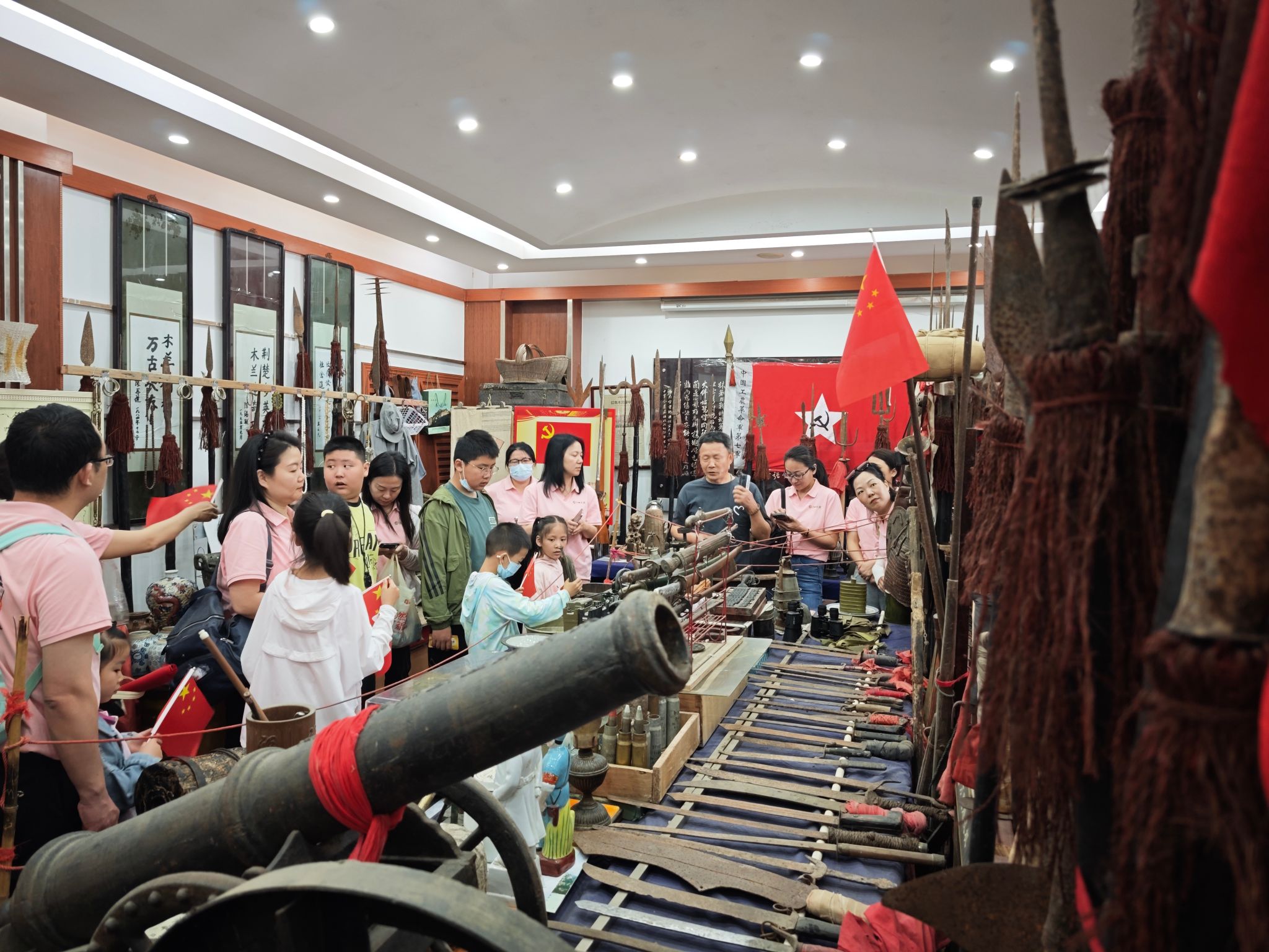 我们一行参观了博物馆的革命文物陈列室。在讲解员的带领下,我们看到了陈列室里珍贵的革命文物,有李先念主席用过的战刀、吴光浩在黄麻起义时计时用的怀表、陈再道将军打土豪用过的驳壳枪、游击队使用的大刀、长矛、土炮、土地雷、手榴弹,还有从黄陂革命老区收来的新五师缴获的日军军刀,上面还刻有军队番号和姓名。这些文物从土地革命到抗日战争时期,每一把敌人的刀都沾过烈士的鲜血,在我们脑海深刻地再现了每一件文物背后的英雄故事。