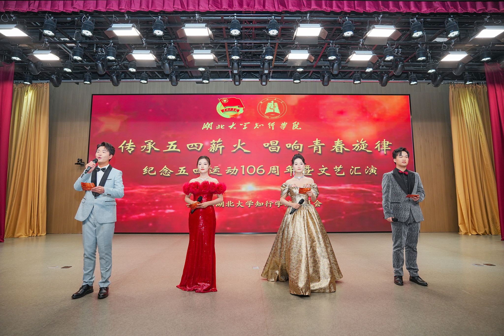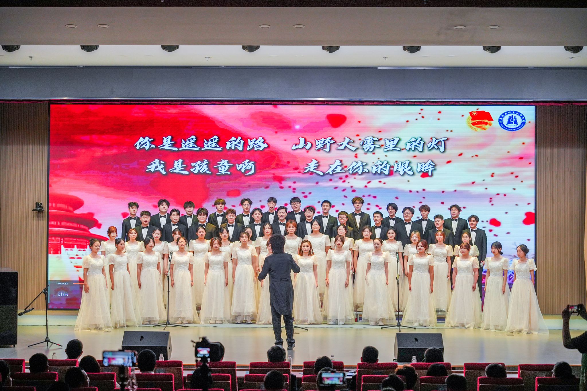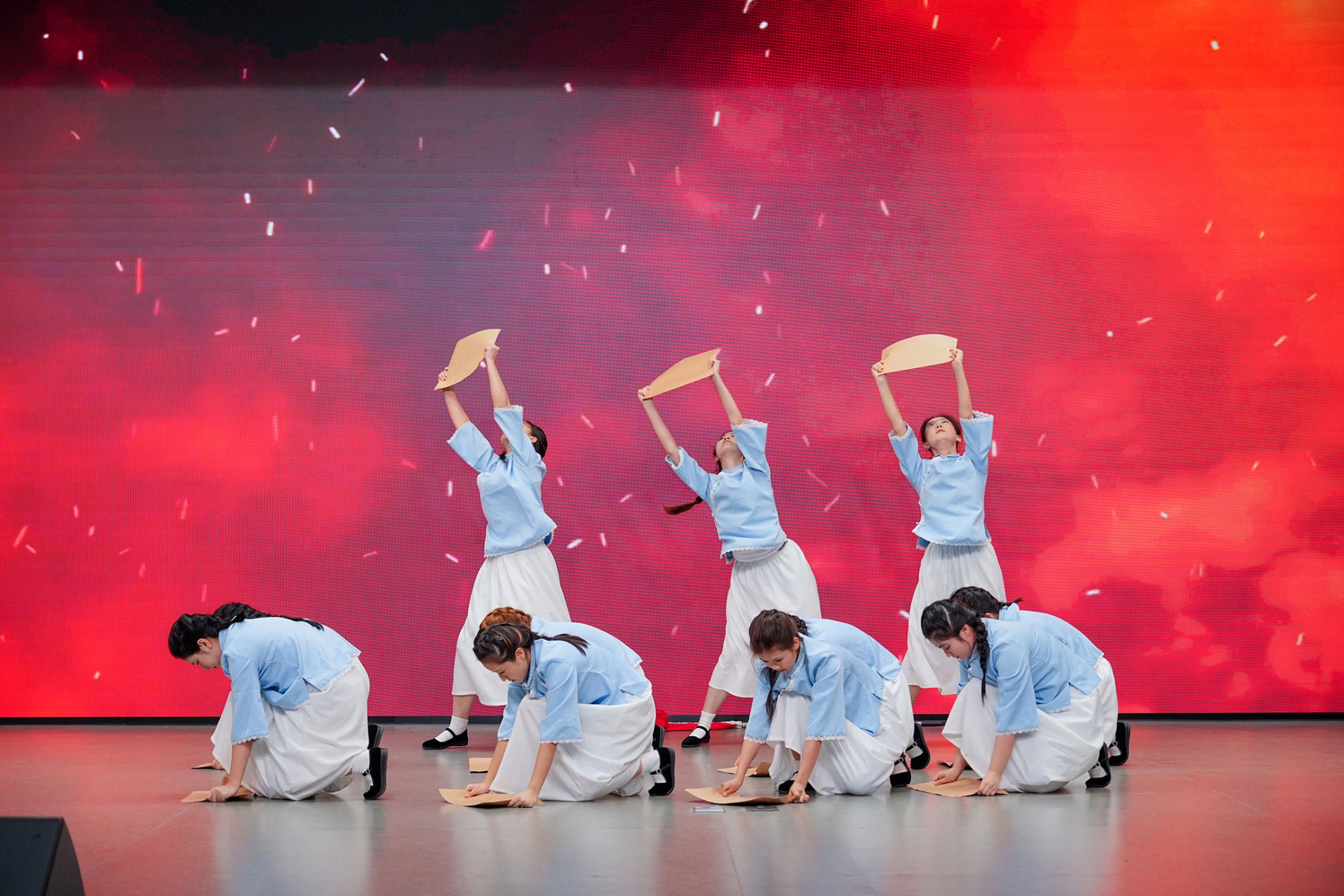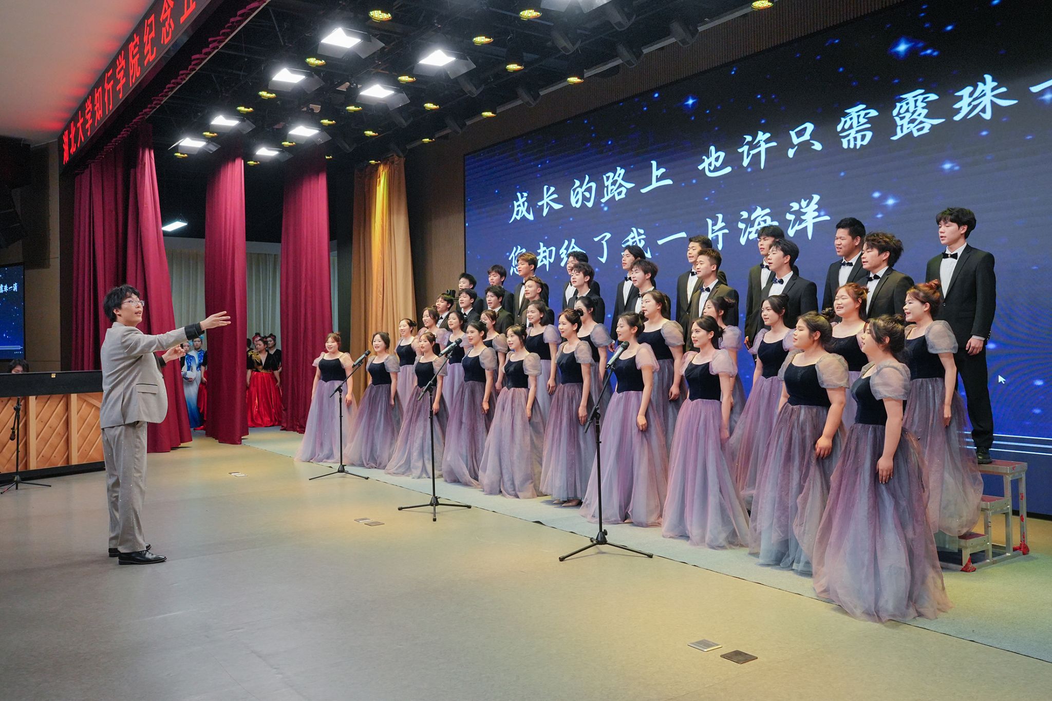 表彰大会后,文艺汇演正式拉开帷幕。校艺术团的舞蹈《觉醒年代》《盛开》、校广播台的朗诵《山河回响》展现了不同时期青年的使命与担当。随后,九个二级学院的合唱队依次登台献唱,参演学子用歌声展现青春活力,表达了对祖国的热爱、对知行的深情、对青春的赞美与对美好的向往,体现出新时代知行学子昂扬向上的精神风貌与砥砺奋进的意志品格,歌声催人奋进,气势振奋人心。文艺汇演最后,校艺术团的合唱《有我》和教职工的合唱《海阔天空》将表演推向高潮。