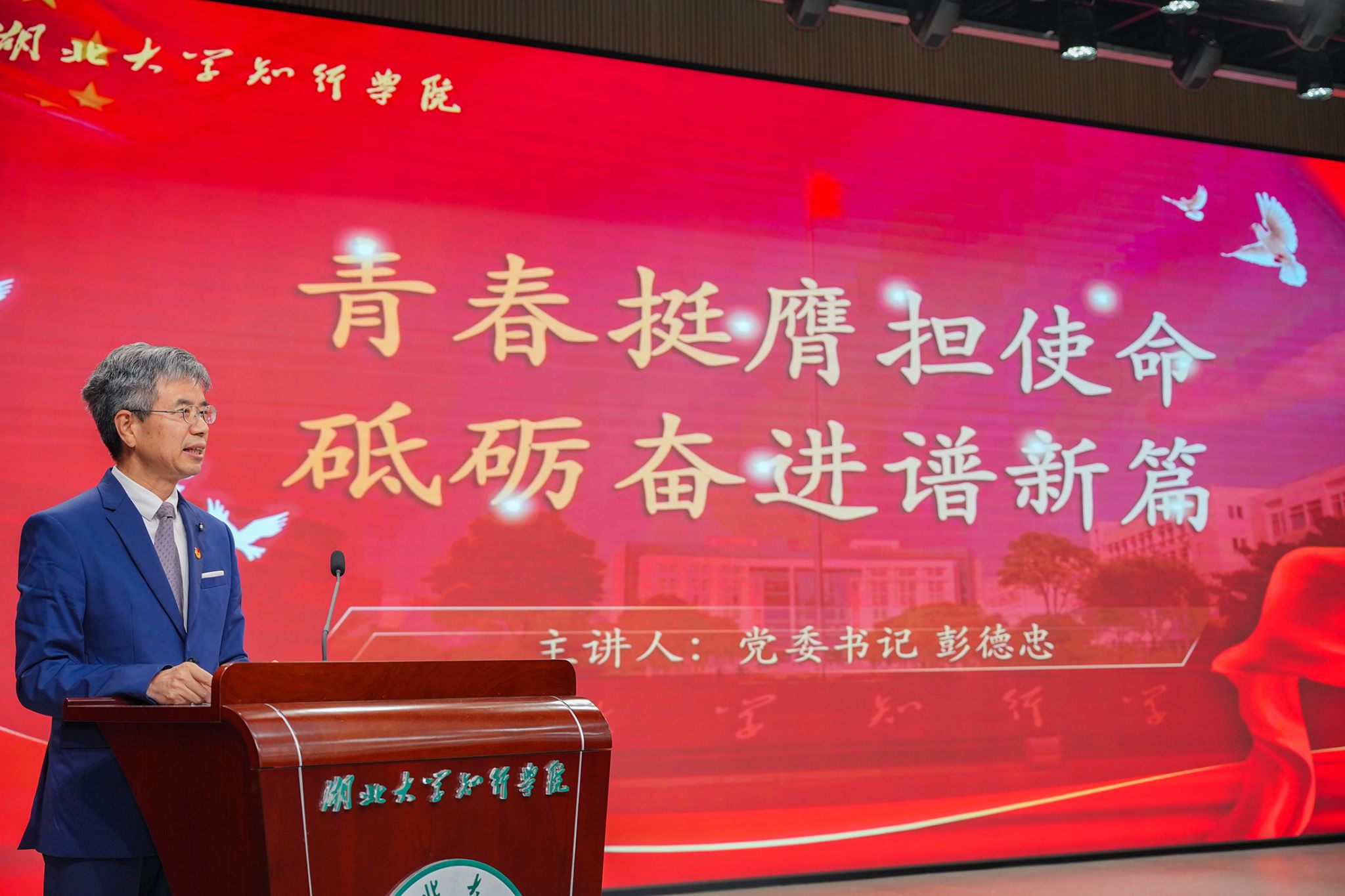 党委书记彭德忠发表了热情洋溢的讲话。他首先代表学校党委向全校的青年朋友和青年工作者致以节日的问候,向受表彰的先进集体和优秀个人表示热烈的祝贺,对过去一年学校共青团工作给予充分肯定。他指出,时代各有不同,青春一脉相承,知行青年要传承好、发扬好“永久奋斗”的精神,让青春的底色更加绚丽多姿。要坚定理想信念,树立报国之志,厚植家国情怀,涵养进取品格,将个人理想融入国家战略需要,将个人选择紧密结合时代需求,以实际行动践行“请党放心,强国有我”的青春誓言;要珍惜美好青春,锤炼过硬本领,坚持知行合一,主动拥抱新技术,学习新技能,培养创新能力,注重跨学科学习和跨界思维训练,保持对未知世界的好奇心和探索精神;要坚持不懈奋斗,勇于担当作为,继承和发扬五四精神,将自信、自立、自强融入血脉,以实干奋斗践行责任担当,争做走在时代前列的奋进者、开拓者、奉献者。