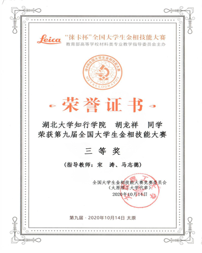 近日,第九届全国大学生金相技能大赛在太原理工大学举行,我校机械与自动化学院首次组队参加该项赛事获得佳绩。在机械与自动化学院宋涛、马志德老师的精心指导下,胡龙祥同学在此次比赛中荣获全国三等奖,汪晓鑫、覃粤两位同学分别获得优胜奖。