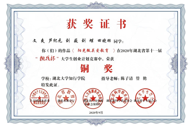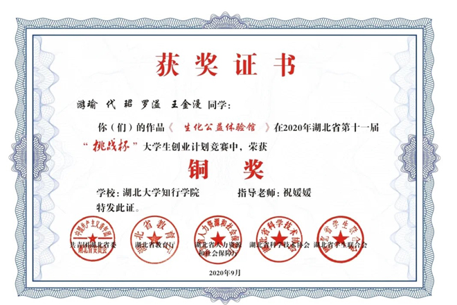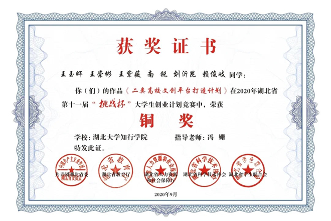 “挑战杯”湖北省大学生创业计划竞赛由共青团湖北省委、湖北省教育厅、湖北省人力资源和社会保障厅、湖北省科学技术协会、湖北省学生联合会共同主办,竞赛被誉为中国大学生学生科技创新创业的“奥林匹克”盛会,是全国最具代表性、权威性、示范性、导向性的大学生竞赛。