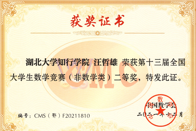 知行学子荣获全国大学生数学竞赛二等奖