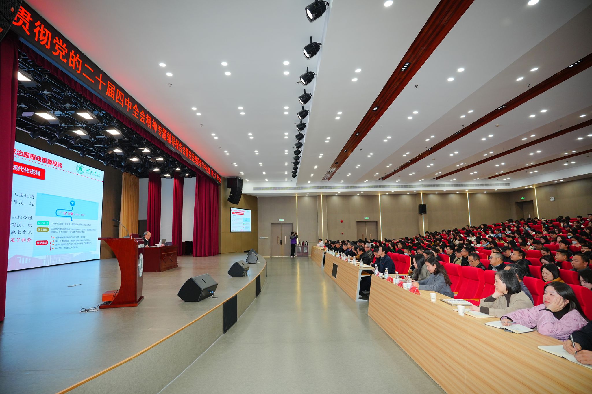 11月19日下午,省委宣讲团成员、湖北大学党委书记谢红星教授莅临知行,为广大师生党员宣讲党的二十届四中全会精神。知行学院党委书记高连顺主持报告会。湖北大学党校办负责同志、湖北大学党委第二巡察组全体组员、知行学院全体教职工党员和学生党员代表参加学习。