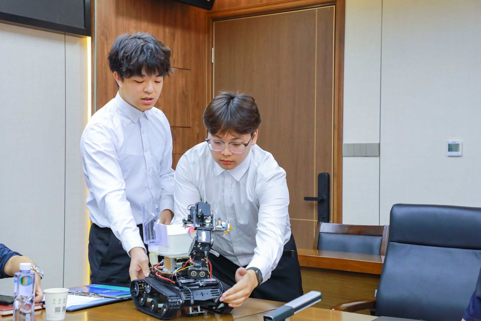 高连顺代表学校向杨康一行莅临学校调研指导表示热烈欢迎,感谢长江新区党工委长期以来对学校工作的关心支持,并简要介绍了学校人才工作基本情况及近年来学校在人才引进、培养、评价等工作方面采取的创新举措,表示将充分发挥学校特色优势,更好服务地方经济社会高质量发展。学工处负责人简要介绍了我校学生创新创业工作基本情况。学校机械与自动化学院学生创业团队现场展示了相关作品成果。
