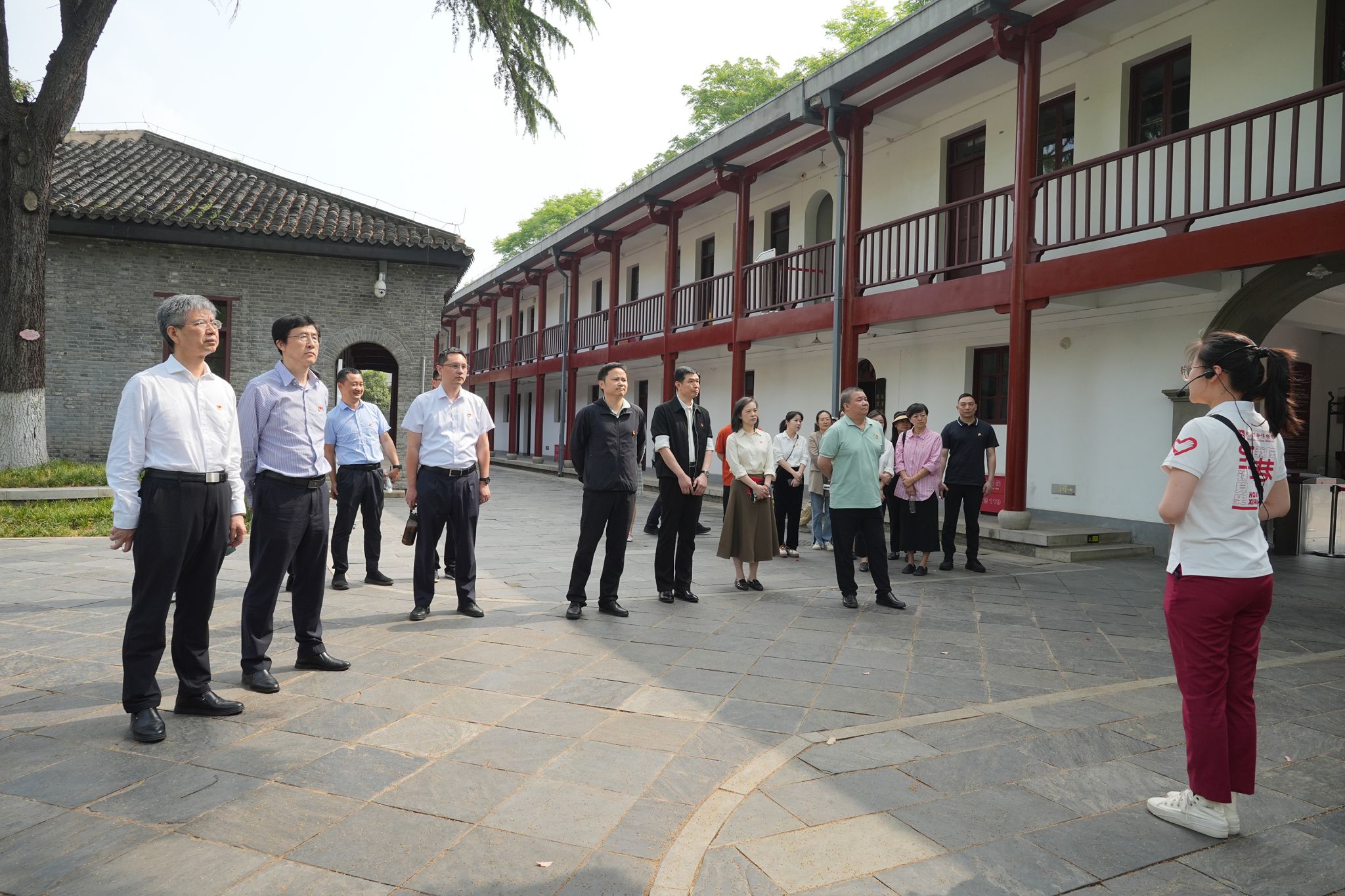 参观前,党员干部们在纪念馆内集体重温了入党誓词。在会址工作人员的带领和讲解下,大家重温了中共五大召开的历史背景、会议任务、重大意义。一件件饱经沧桑的珍贵文物、一张张定格历史的资料照片、一幕幕记录事件的片段影像,带领大家重温中共五大历史,学习和感悟中共五大提出的争取无产阶级对革命的领导权原则以及第一次设立中央监察委员会在党的思想理论建设和组织建设方面的重要贡献,坚定在新时代坚持弘扬艰苦奋斗精神,继承革命光荣传统的信念。