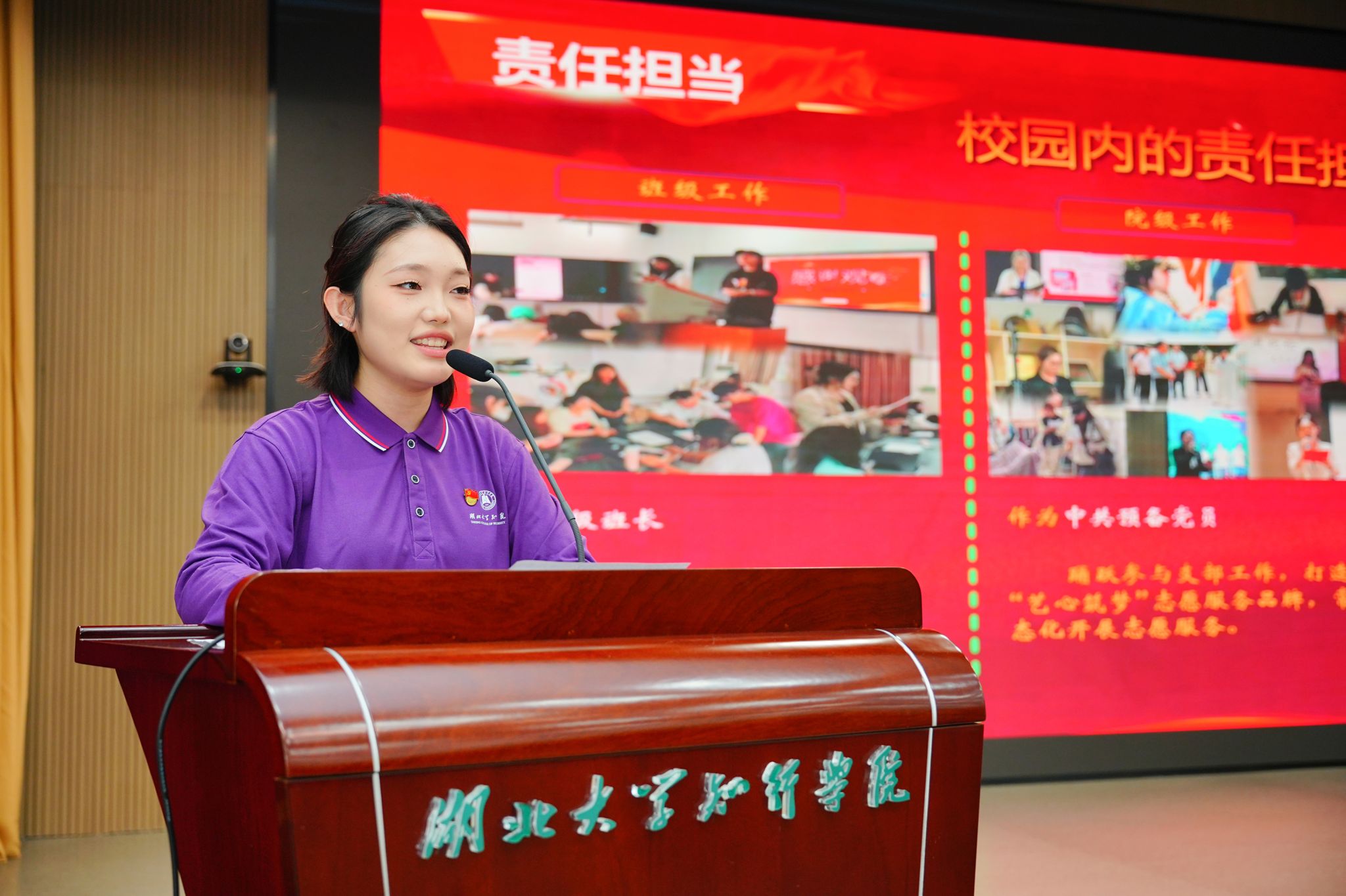 宣讲中,9位优秀学生党员从学业科研、志愿服务、社会实践、学生工作等多个维度,分享了自己的成长故事与奋斗历程。从袁佳豪同学以“白杨树”自喻,扎根基层、服务师生,到徐云同学以专业为笔、以科普为墨,点燃青少年的科学梦想;从明鑫鸿同学跨越600公里山路、逆境中拼搏奋进,到杨月同学在支部赋能下开展理论宣讲、服务生态实践;从臧佳韵同学用画笔传递温暖、美育润心,到吴若霖同学以“逐光”为志、在学业与实践中双向奔赴;从陈梦娴同学以文科担当践行“文以载道”,到曹鸿洋同学用代码书写党员初心,再到卢笛同学在全谷物科普中推动健康中国建设。他们的故事,既有理想信念的坚定,也有扎根基层的坚守;既有专业领域的突破,也有服务群众的温度。宣讲过程中,选手们的事迹真实感人、语言朴实真挚,赢得了现场师生的阵阵掌声。